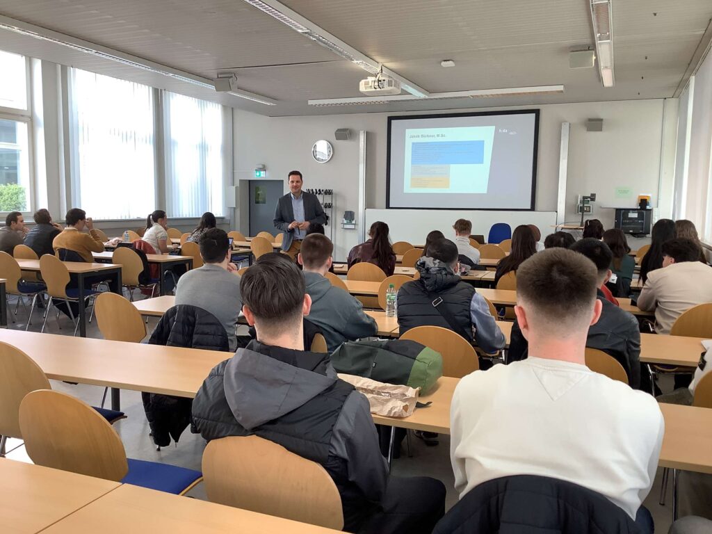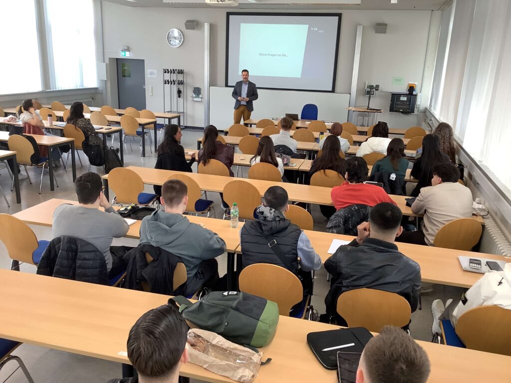 In seiner einleitenden Vorlesung ließ Jakob Bürkner, Studiengangsleitung Bachelor of Science Betriebswirtschaftslehre der Hochschule Darmstadt, zunächst mögliche Berufsperspektiven diskutieren und stellte die verschiedenen Studienwege an der HDA vor.
